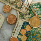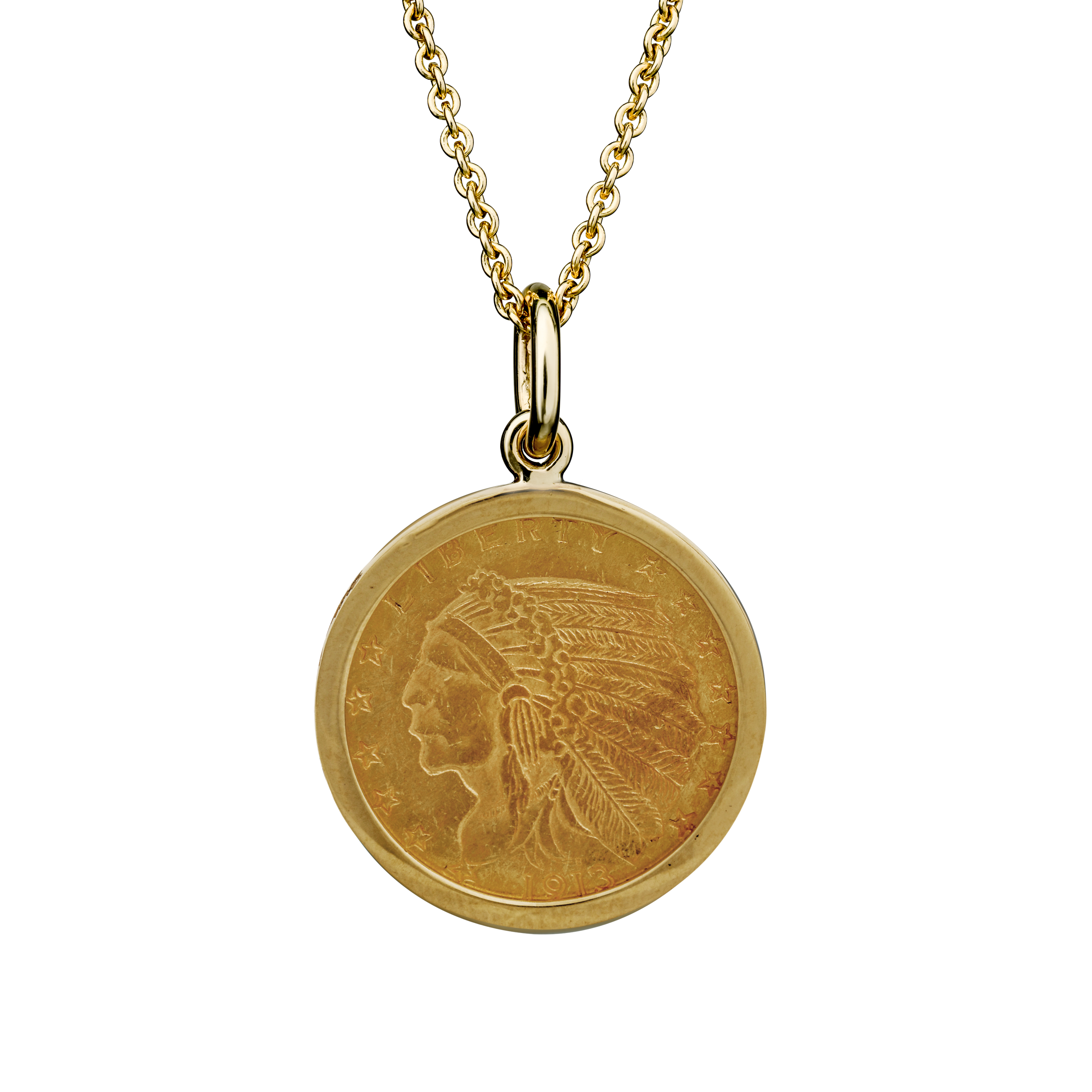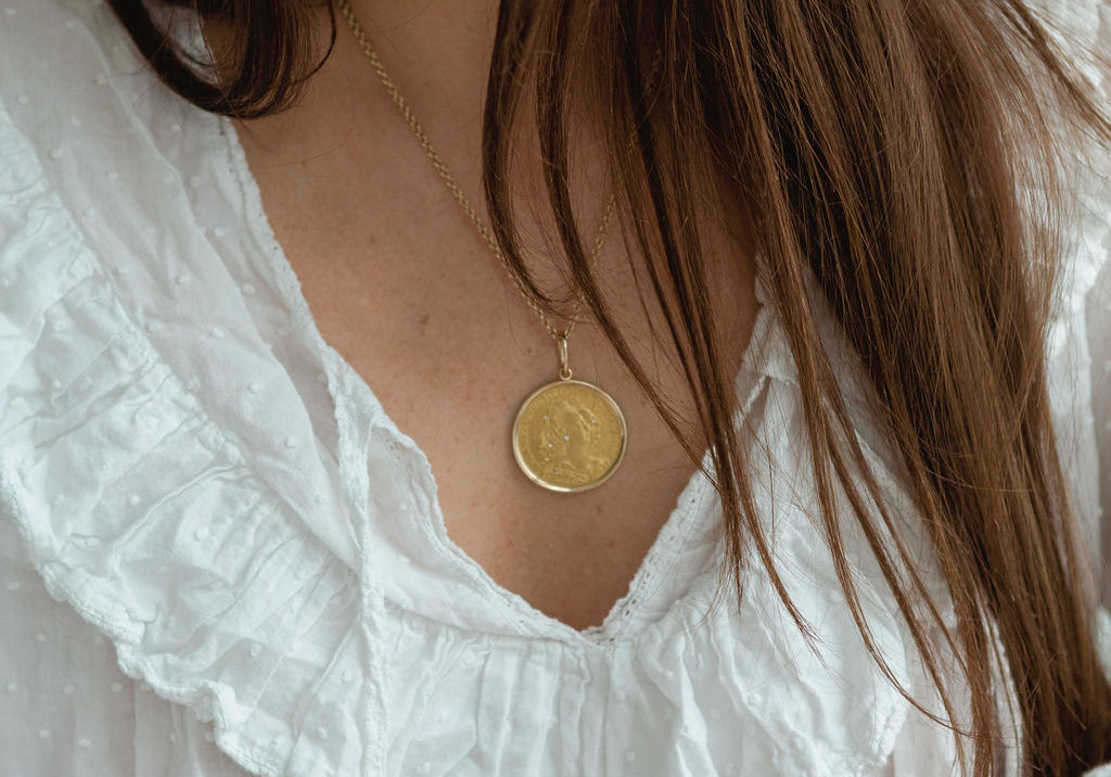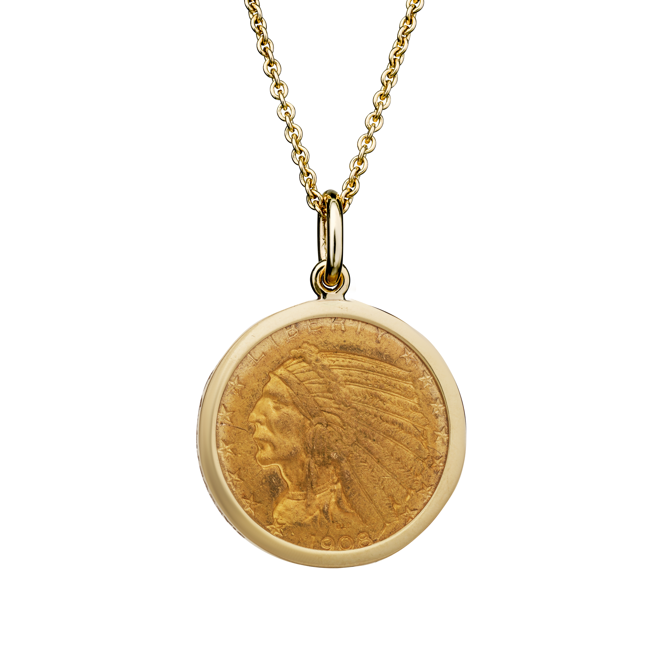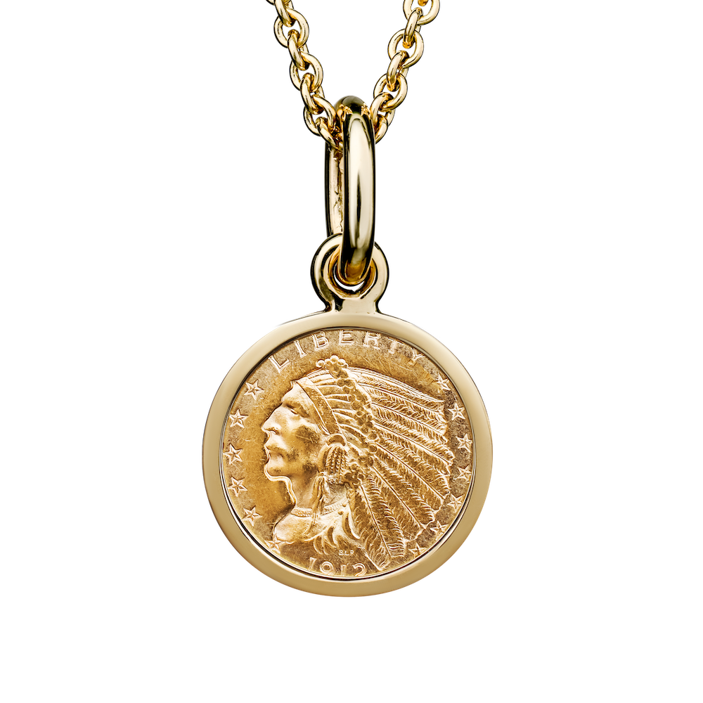For the best care, prevent your piece from contact with chemicals such as chlorine, perfume, lotions, etc. which could potentially alter its look. Gold is a soft metal and should be worn with care. When you are not wearing your coin, store it individually in the pouch and box received at the time of purchase. Please wear and love your beautiful new treasure.
