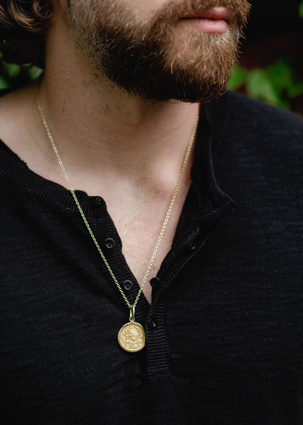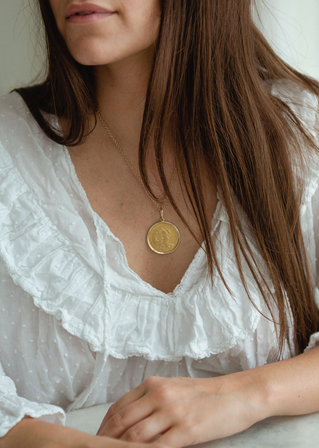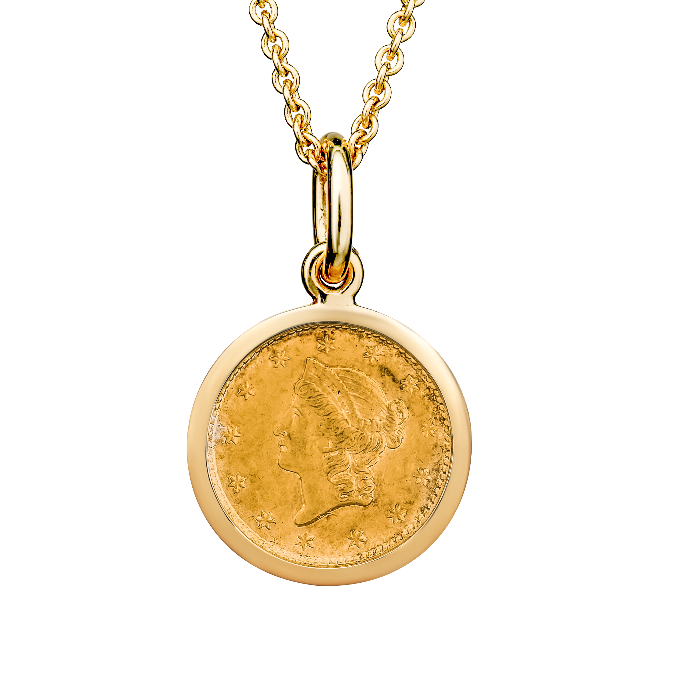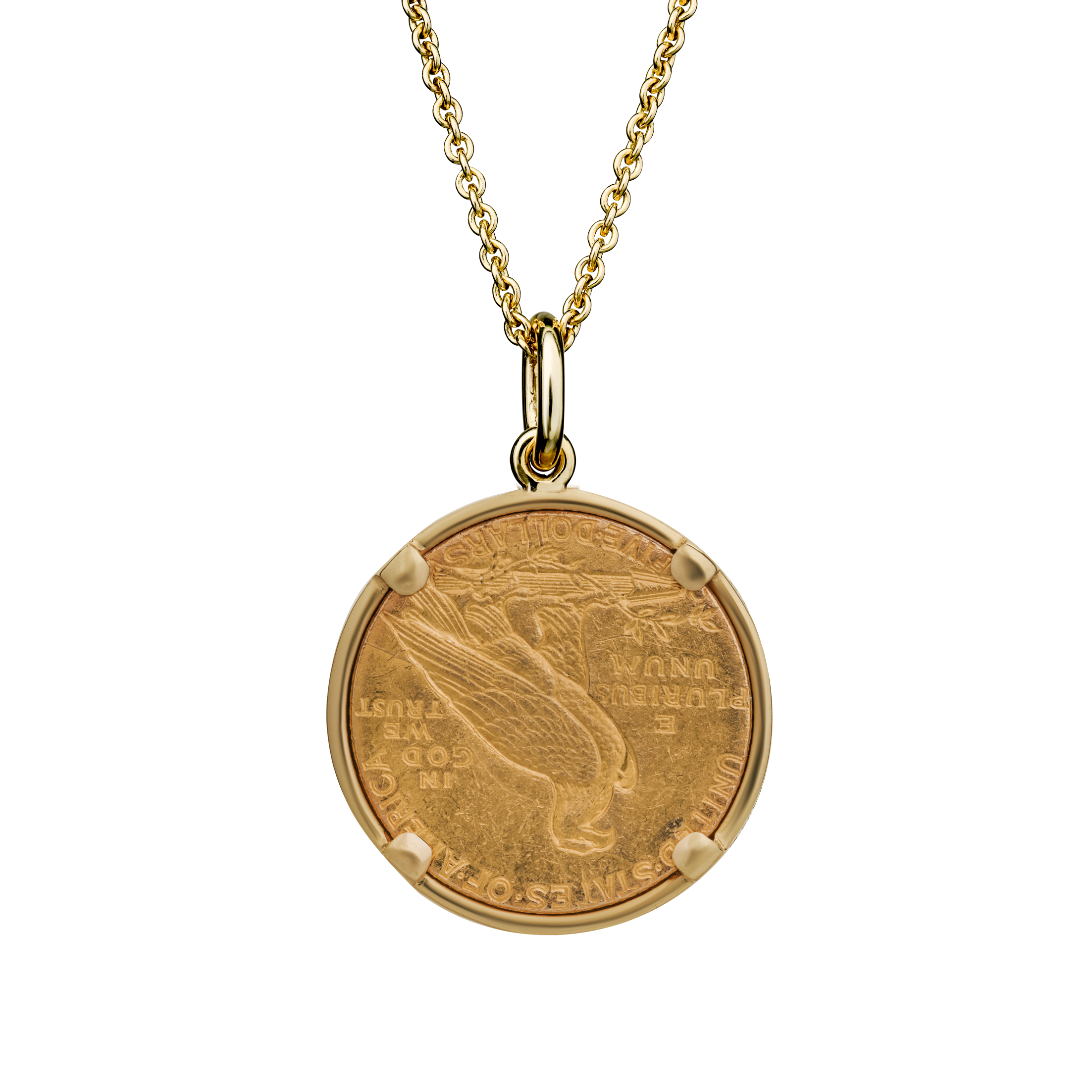 For the best care, prevent your piece from contact with chemicals such as chlorine, perfume, lotions, etc. which could potentially alter its look. Gold is a soft metal and should be worn with care. When you are not wearing your coin, store it individually in the pouch and box received at the time of purchase. Please wear and love your beautiful new treasure.