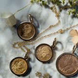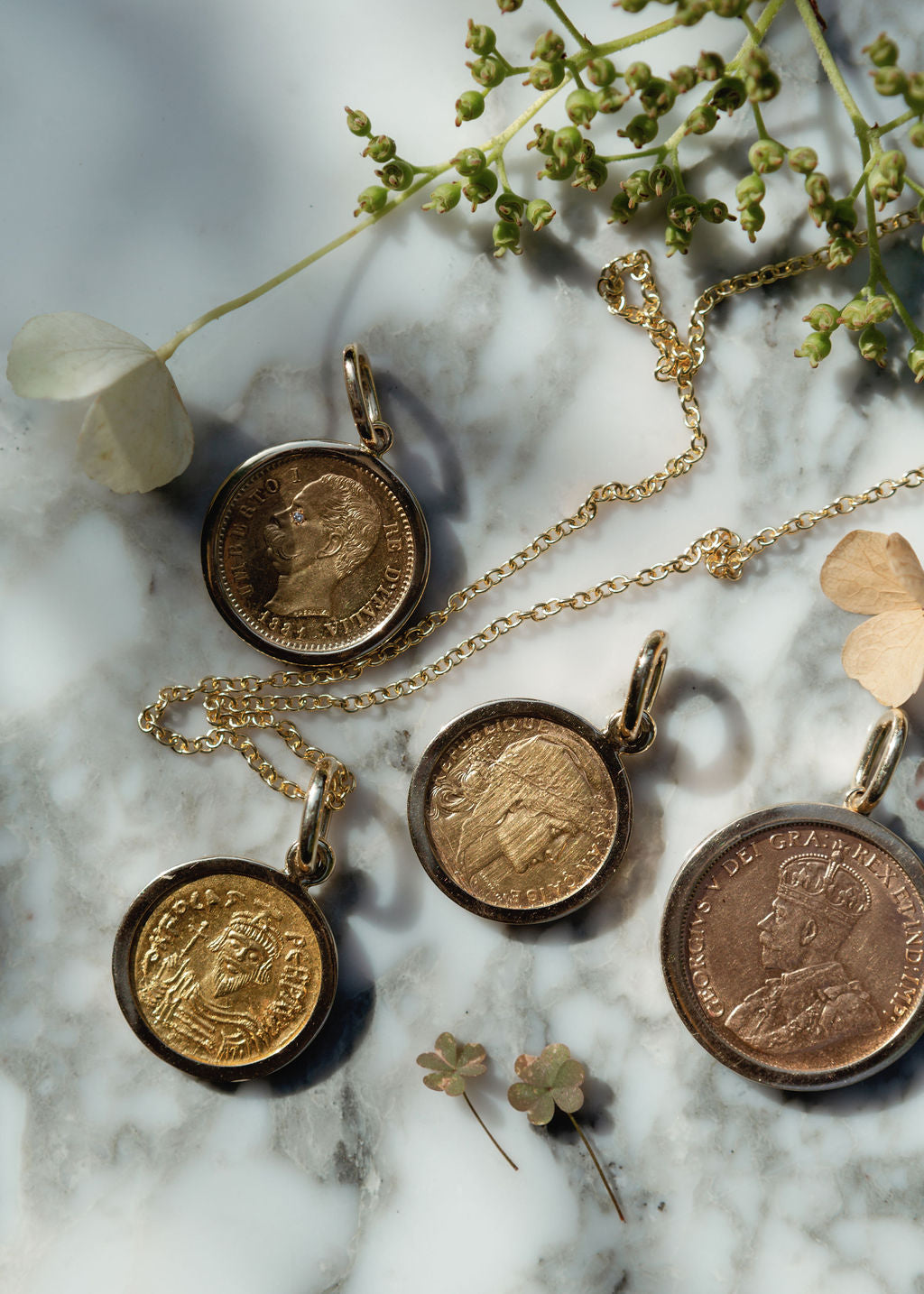 An heirloom of tomorrow, each coin is authentic, antique and one of a kind. Once, a coin of currency passed from hand to hand in exchange for something of desire, found its way to the hands of our jewellers, and finally placed in yours. Repurposed to be treasured by you and admired by others.