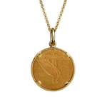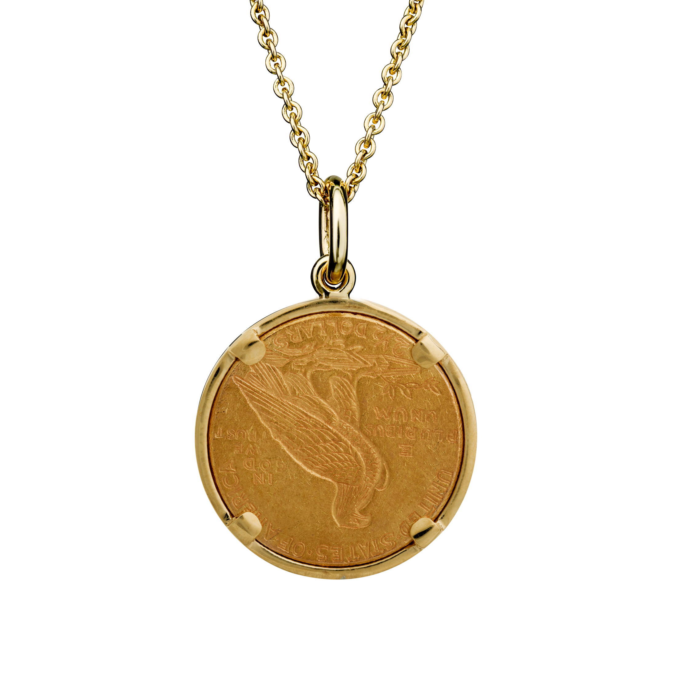 American, 2.5 Dollar 1913, 22 karat yellow gold coin set in 14 karat yellow gold pendant.