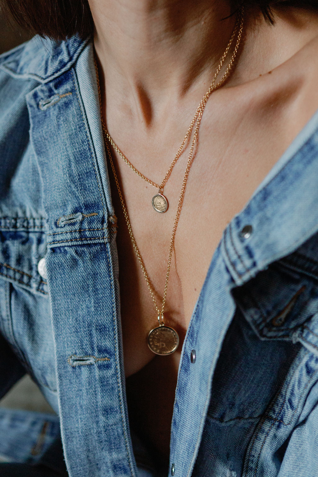 For the best care, prevent your piece from contact with chemicals such as chlorine, perfume, lotions, etc. which could potentially alter its look. Gold is a soft metal and should be worn with care. When you are not wearing your coin, store it individually in the pouch and box received at the time of purchase. Please wear and love your beautiful new treasure.