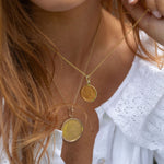 For the best care, prevent your piece from contact with chemicals such as chlorine, perfume, lotions, etc. which could potentially alter its look. Gold is a soft metal and should be worn with care. When you are not wearing your coin, store it individually in the pouch and box received at the time of purchase. Please wear and love your beautiful new treasure.