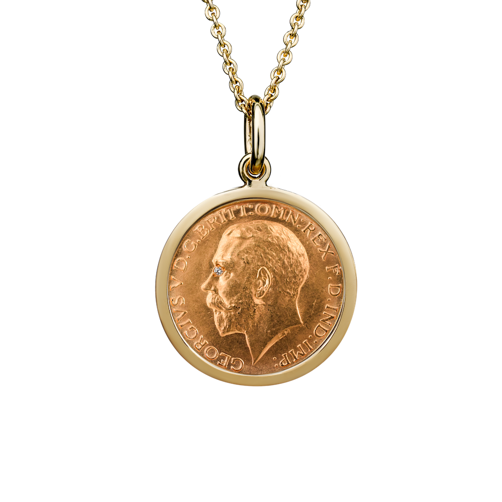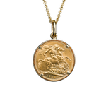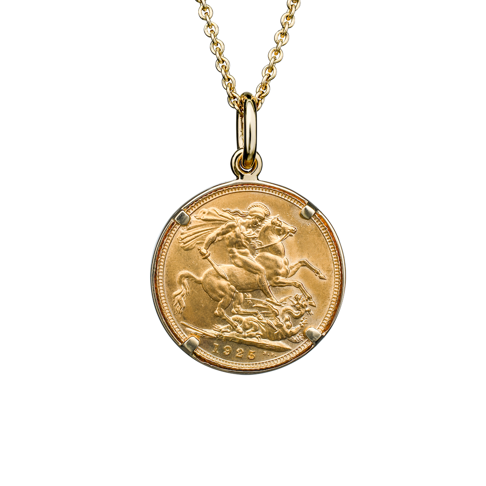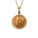 British gold 1925 coin 22 karat yellow gold coin set in 14 karat yellow gold pendant.
