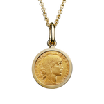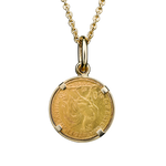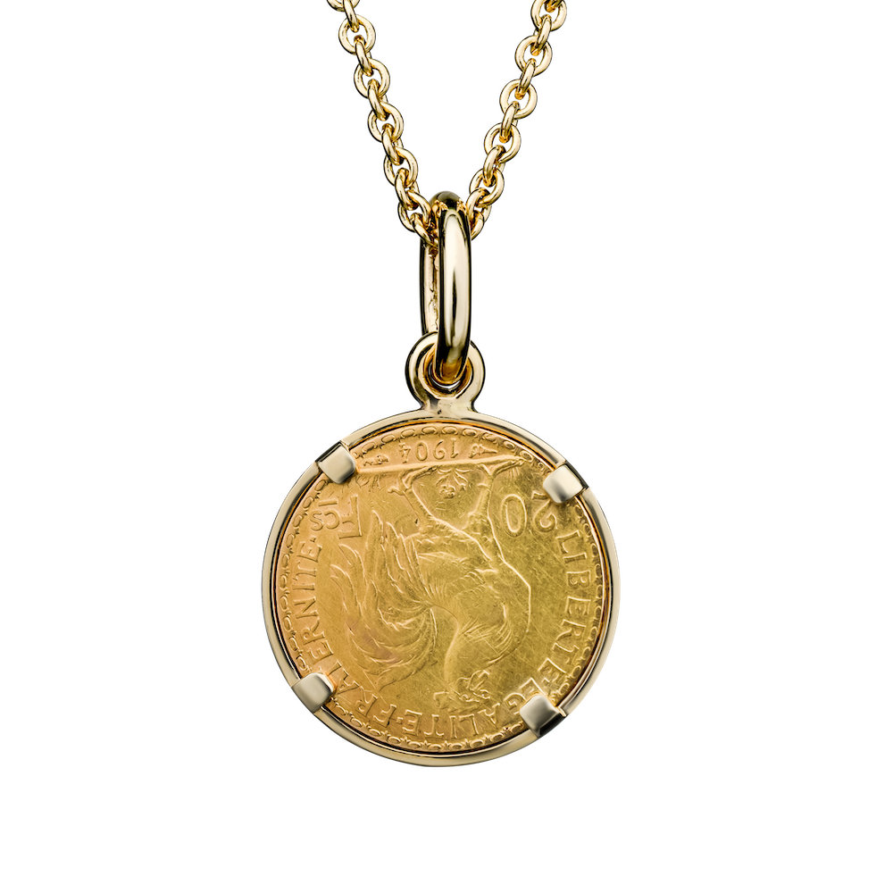 France gold 20 Francs 1904 coin in 22 karat yellow gold coin set in 14 karat yellow gold pendant.